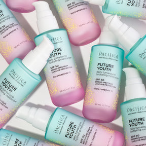 Future proof your skin with our clinically tested and most advanced formulations to address signs of aging. Our Daily Turnaround Hydrating Moisturizer with broad spectrum UVA/UVB protection SPF 50 is your skin-vestment, fortified with Flora+Peptide 11TM, our longevity complex with multi-peptides, phytonutrients, functional flowers and kombucha. This lightweight lotion has a silky texture that is quick to absorb and intensely hydrate, while working to protect against daily stressors, and target signs of aging instantly and over time. Biotechnology meets nature without harming animals.