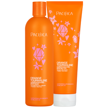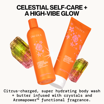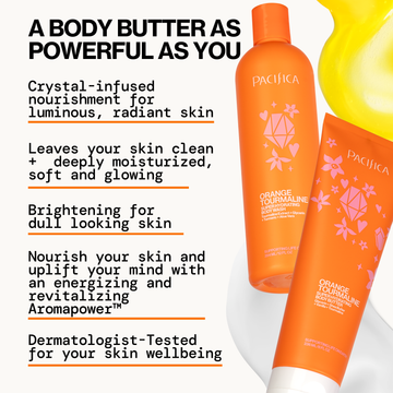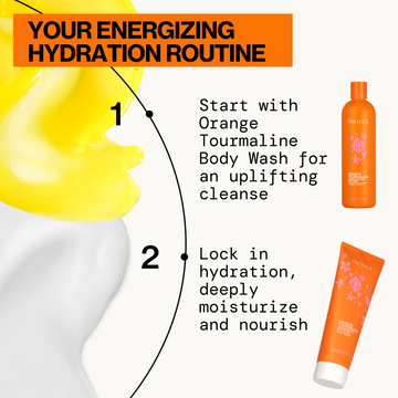 Start your day with an energizing boost from the Orange Tourmaline Hydration Duo, a powerhouse pairing designed to cleanse, hydrate, and awaken your skin’s natural glow. Featuring the Orange Tourmaline Super Hydrating Body Wash and Orange Tourmaline Super Hydrating Body Butter, this crystal-infused duo is packed with skin-loving ingredients like turmeric, tourmaline, and aloe to brighten, refresh, and deeply nourish. The vibrant scent of fresh-squeezed orange juice uplifts your senses, making every shower a revitalizing ritual.