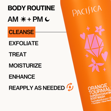 - Cleanse & Refresh – Lather Orange Tourmaline Super Hydrating Body Wash onto damp skin in gentle circular motions. Take in the uplifting citrus scent. Rinse thoroughly.