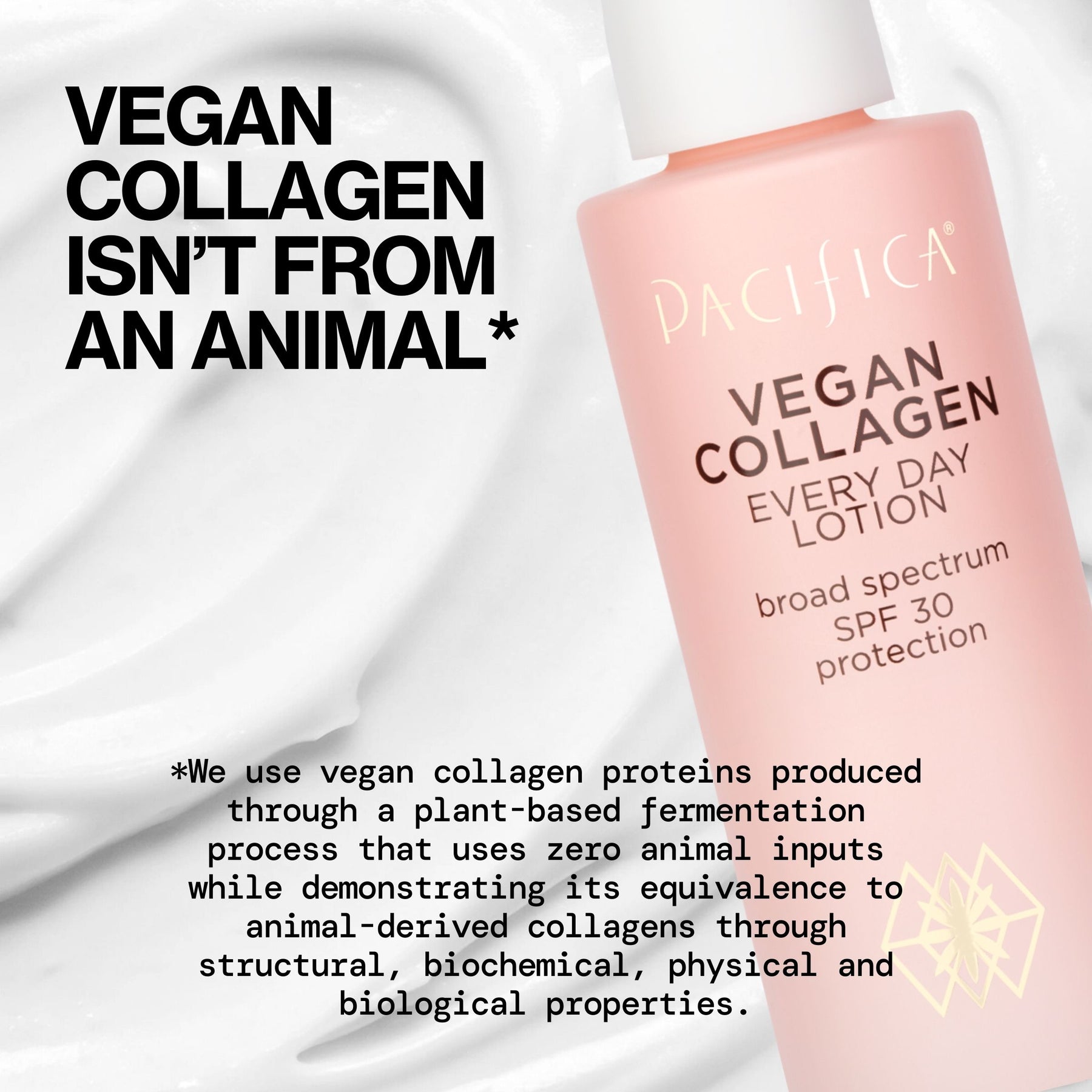 *We use vegan collagen proteins produced through a plant-based fermentation process that uses zero animal inputs while demonstrating its equivalence to animal-derived collagens through structural, biochemical, physical and biological properties.
